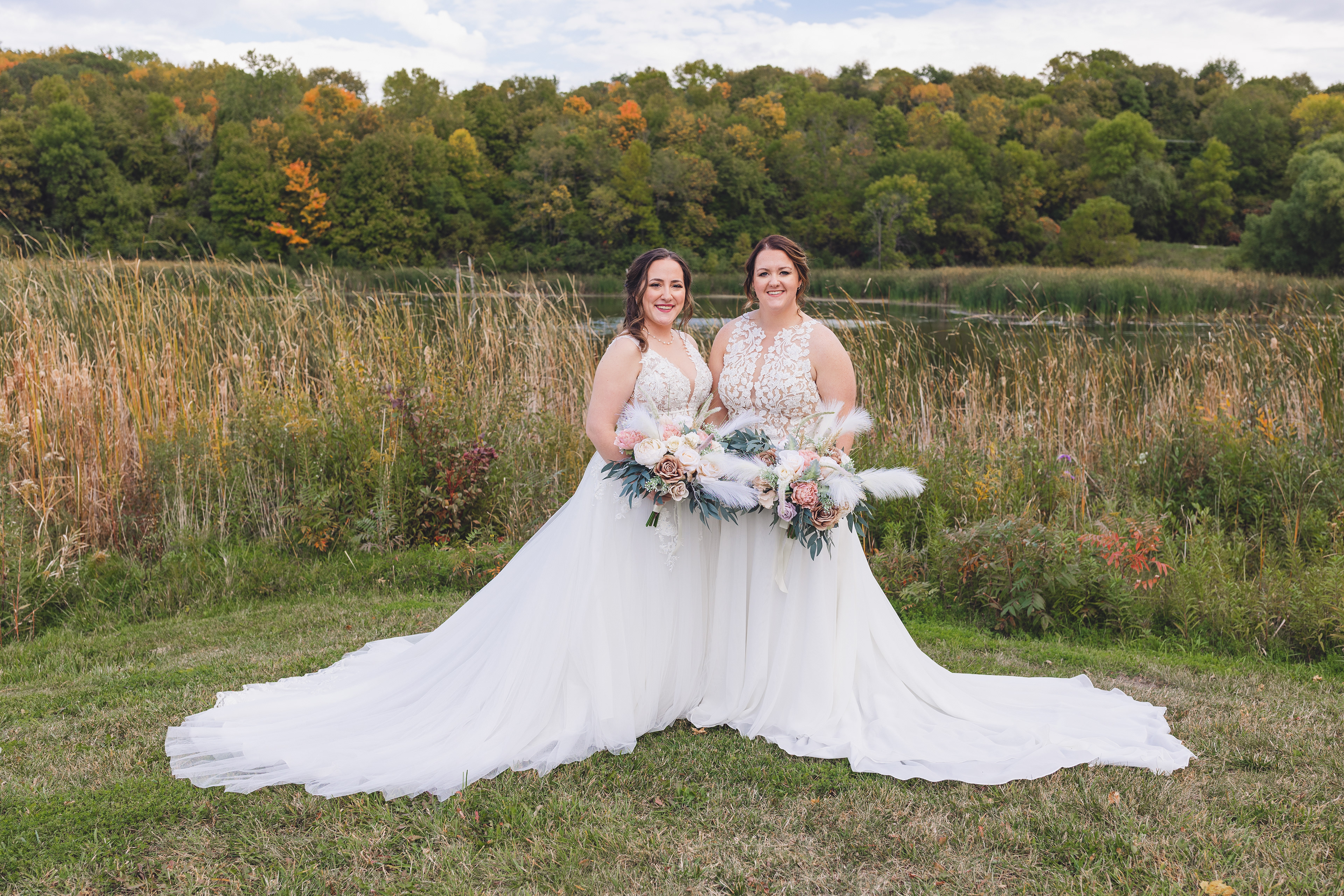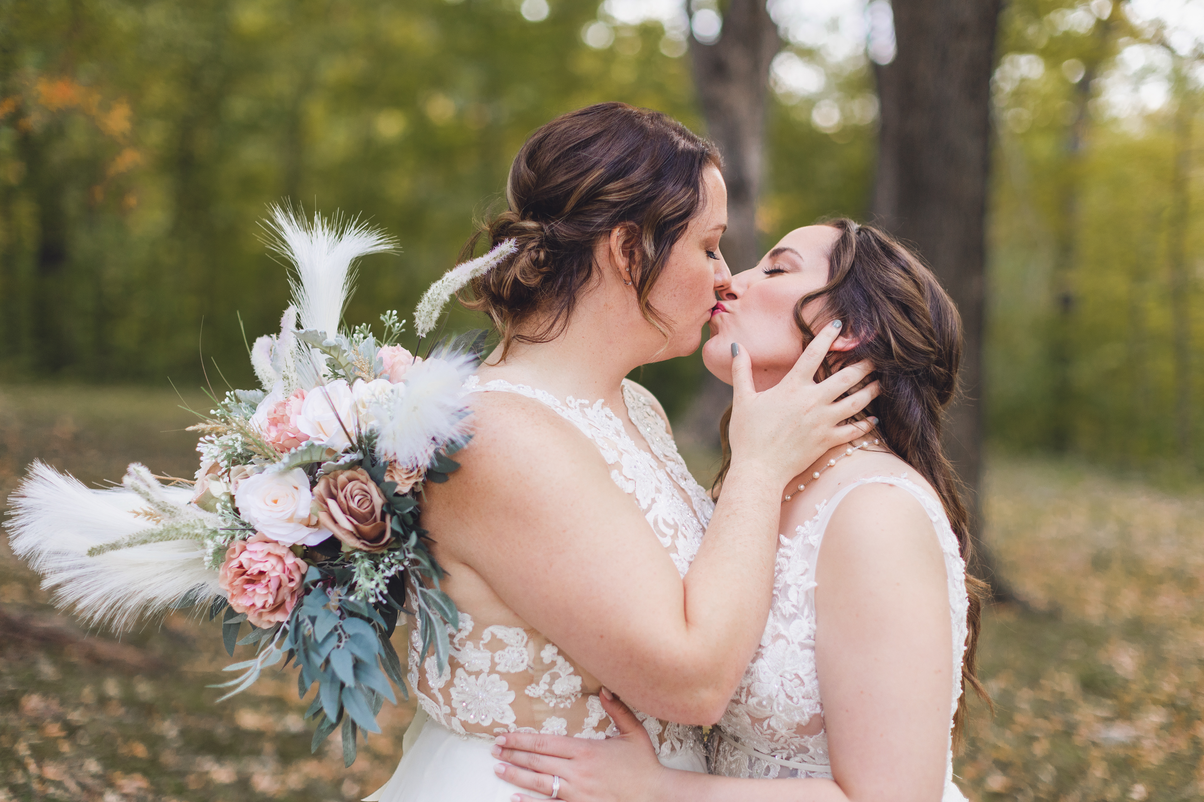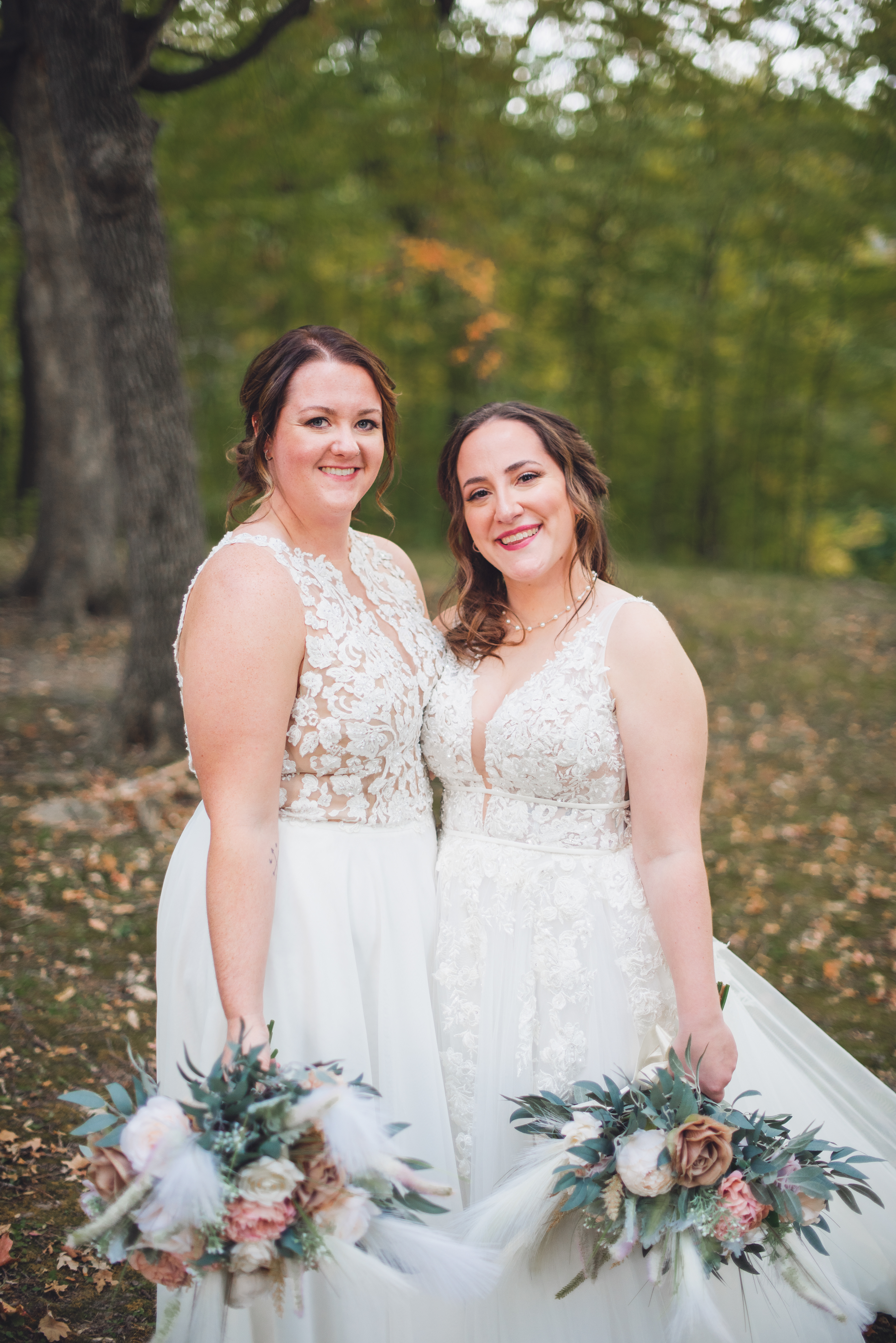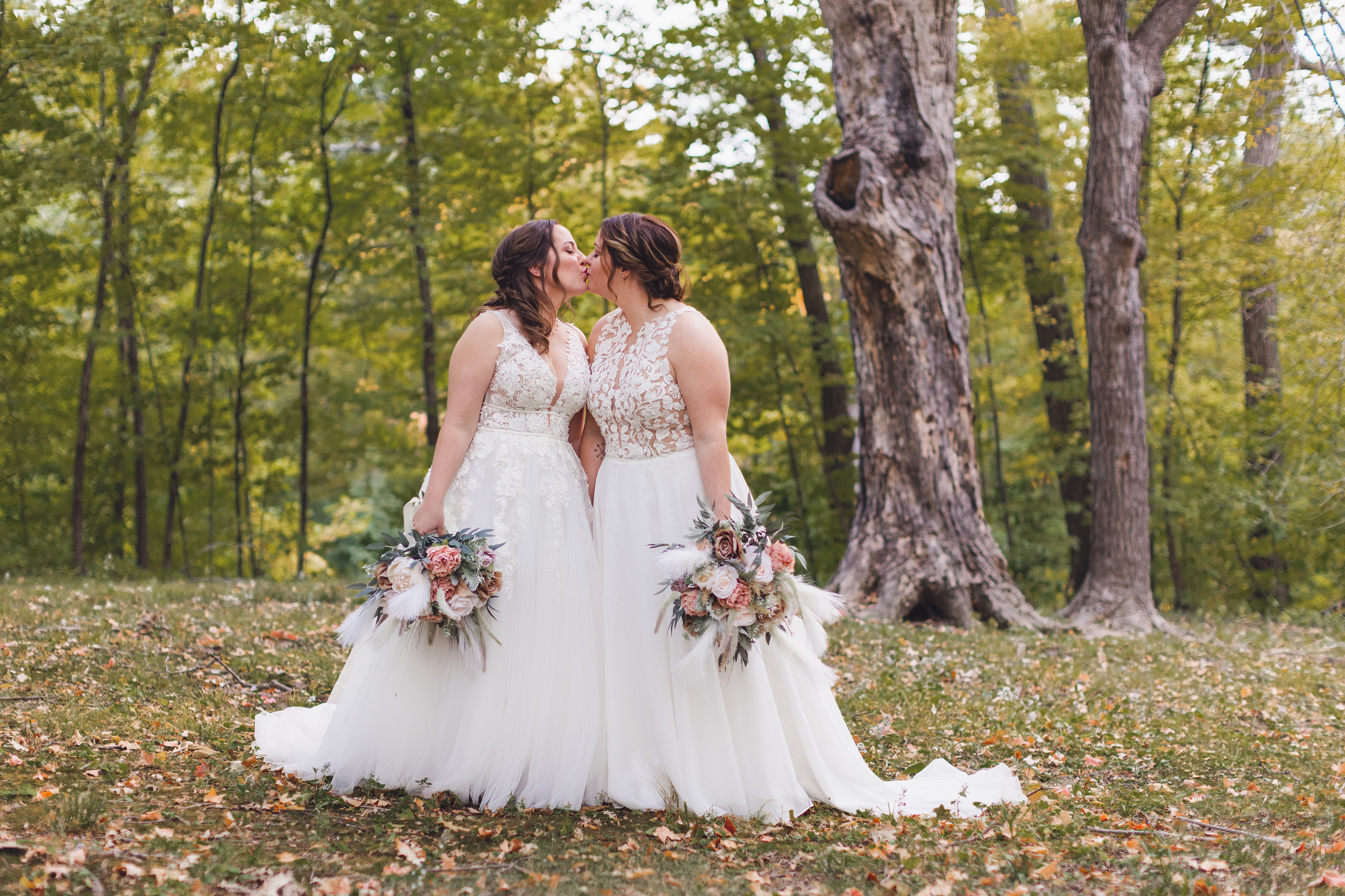 Emma and Kenzie's bougie wedding was hosted at Pique Travel, a new event space in downtown Excelsior, MN. We went to a nearby park I scouted for formal photos as it was an autumn wedding, and those colors are my jam! This wedding had two brides and they had beautiful flowers and dresses to complete their dream look for their wedding day.