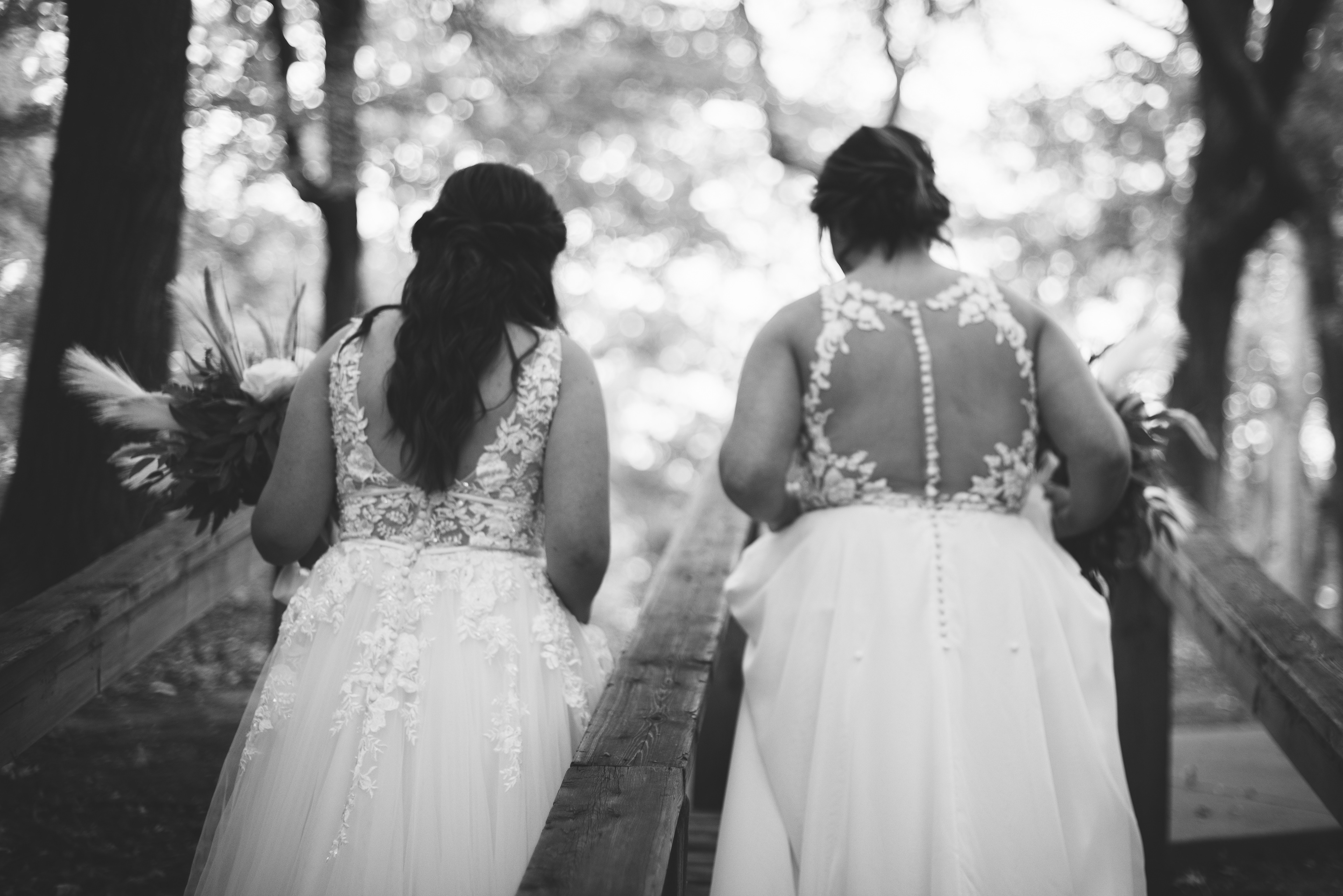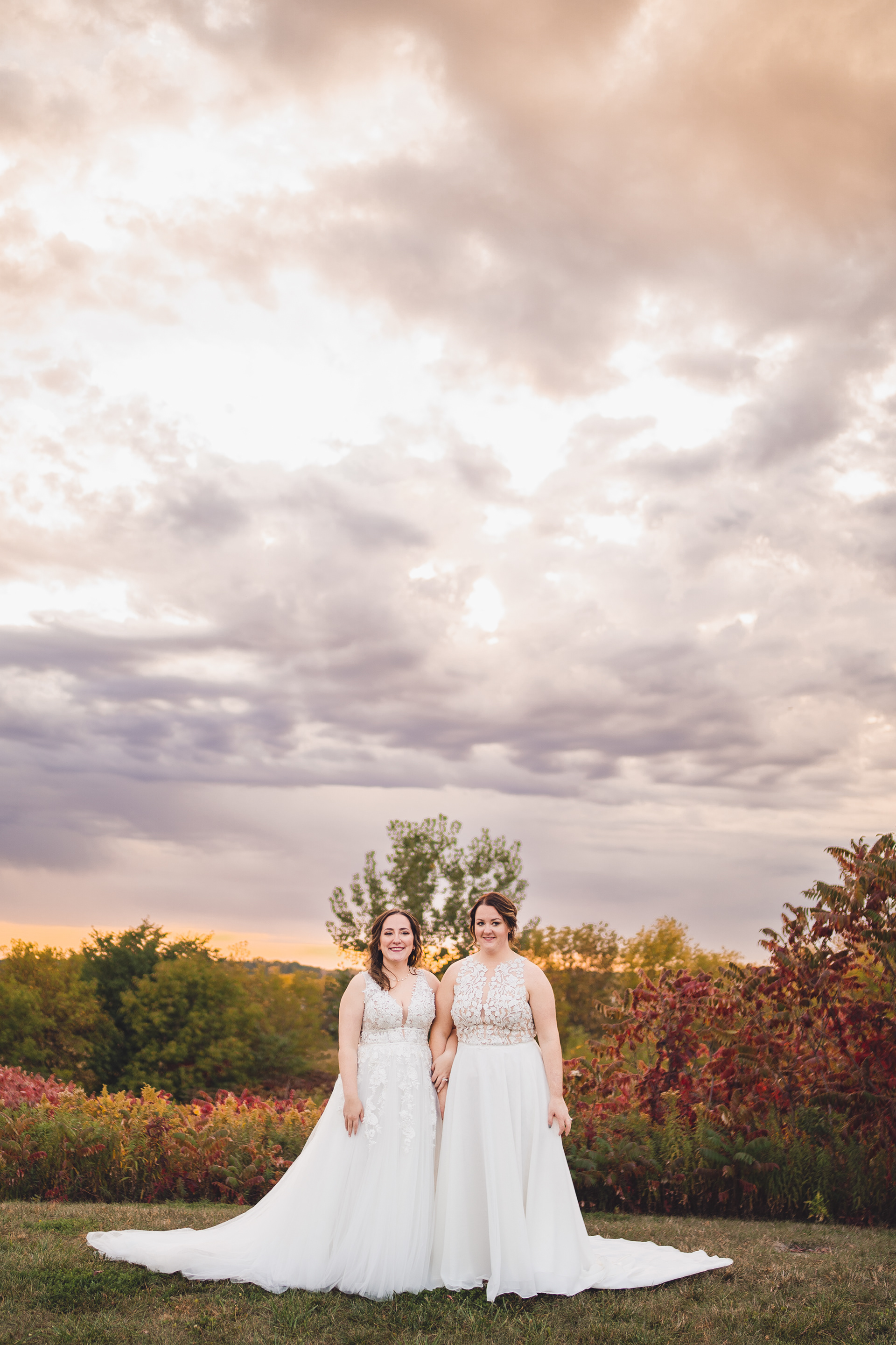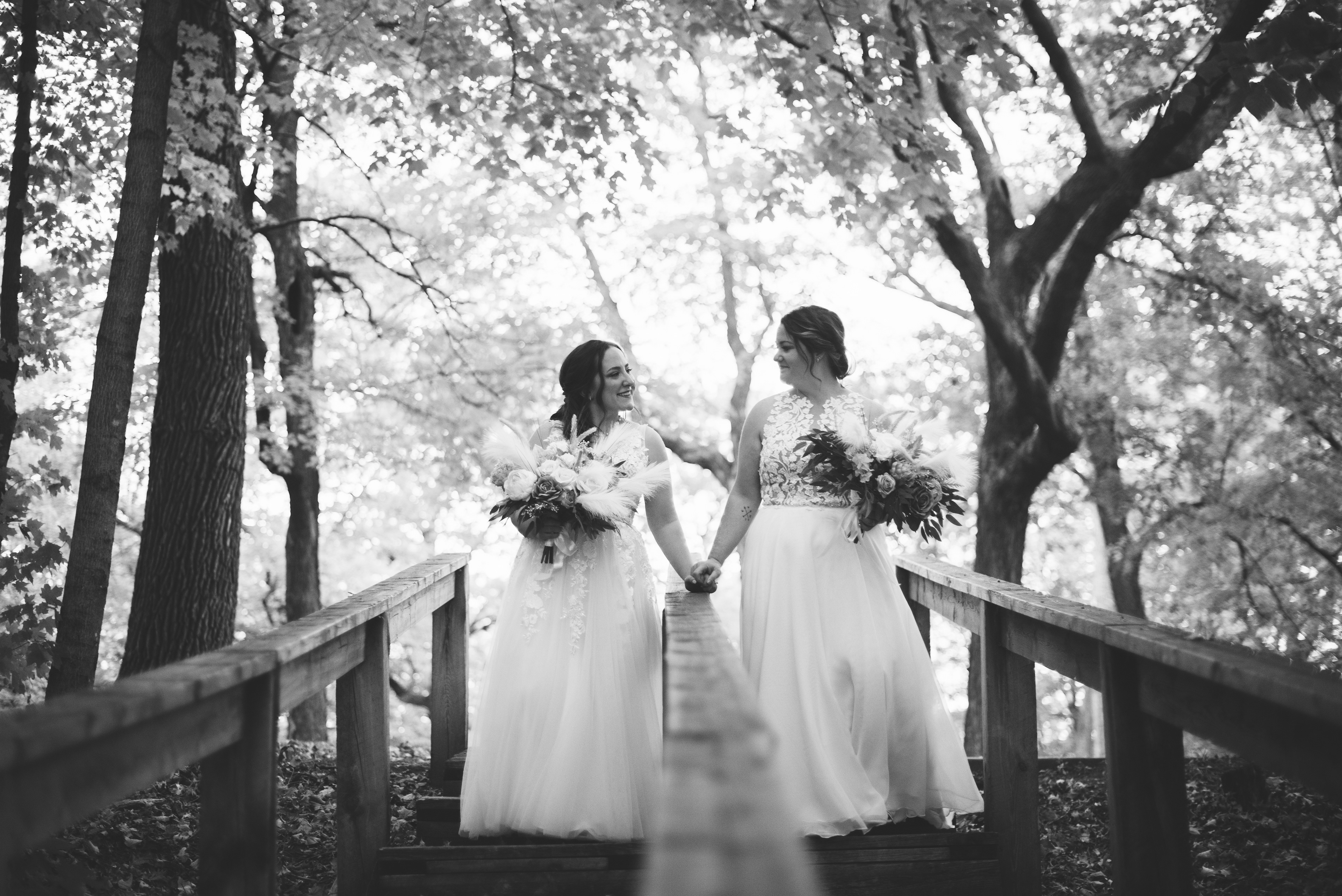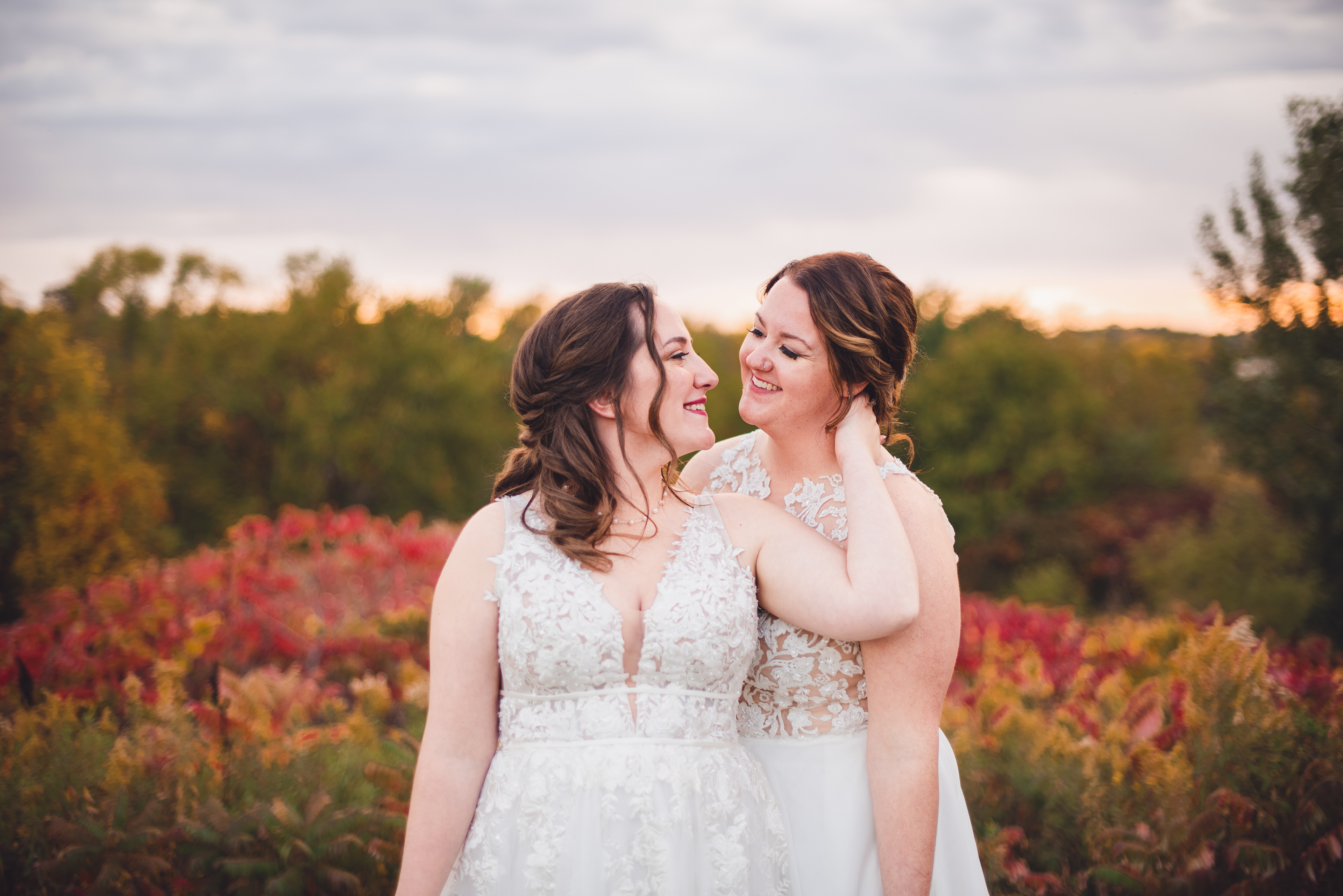 Emma and Kenzie's bougie wedding was hosted at Pique Travel, a new event space in downtown Excelsior, MN. We went to a nearby park I scouted for formal photos as it was an autumn wedding, and those colors are my jam! This wedding had two brides and they had beautiful flowers and dresses to complete their dream look for their wedding day.