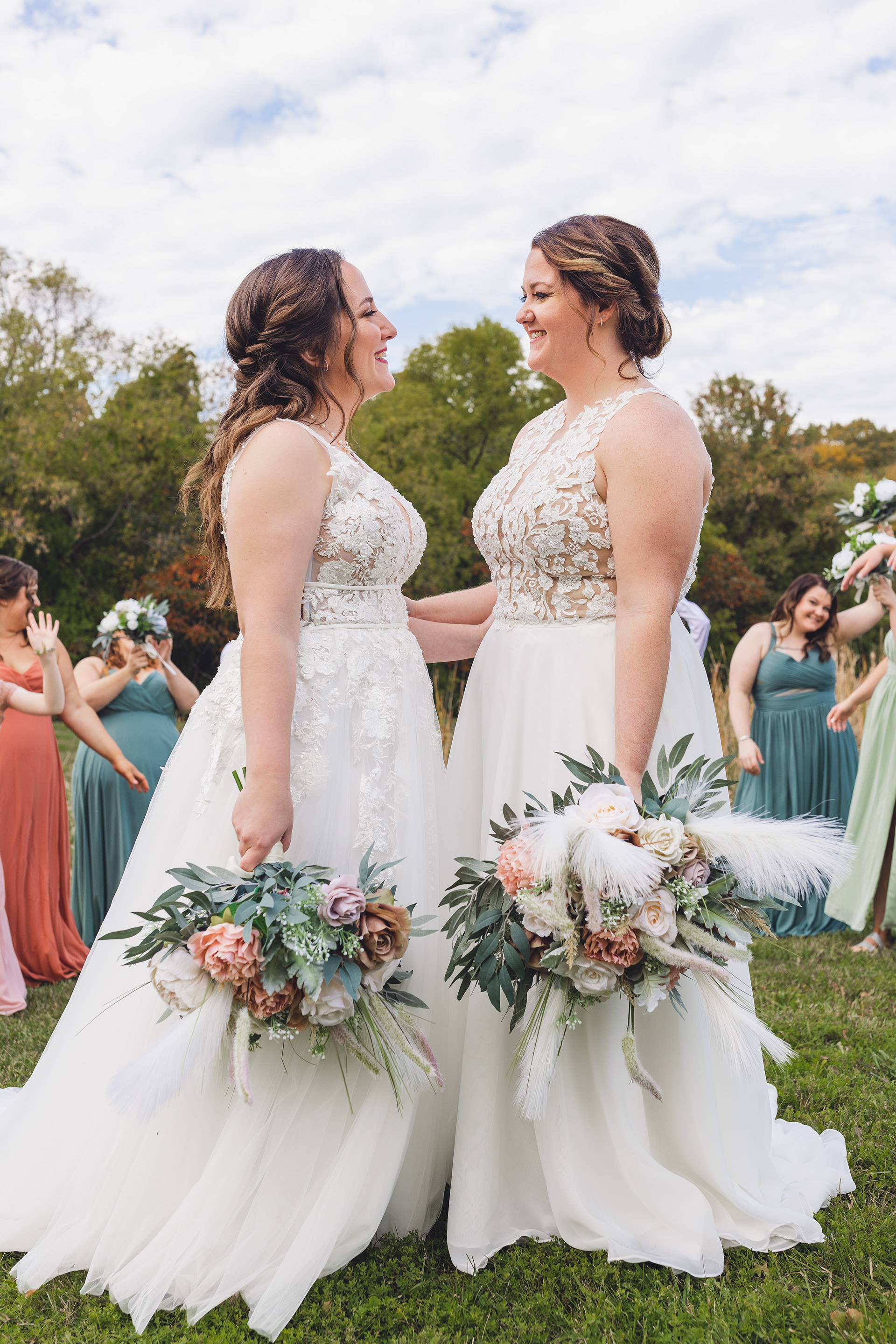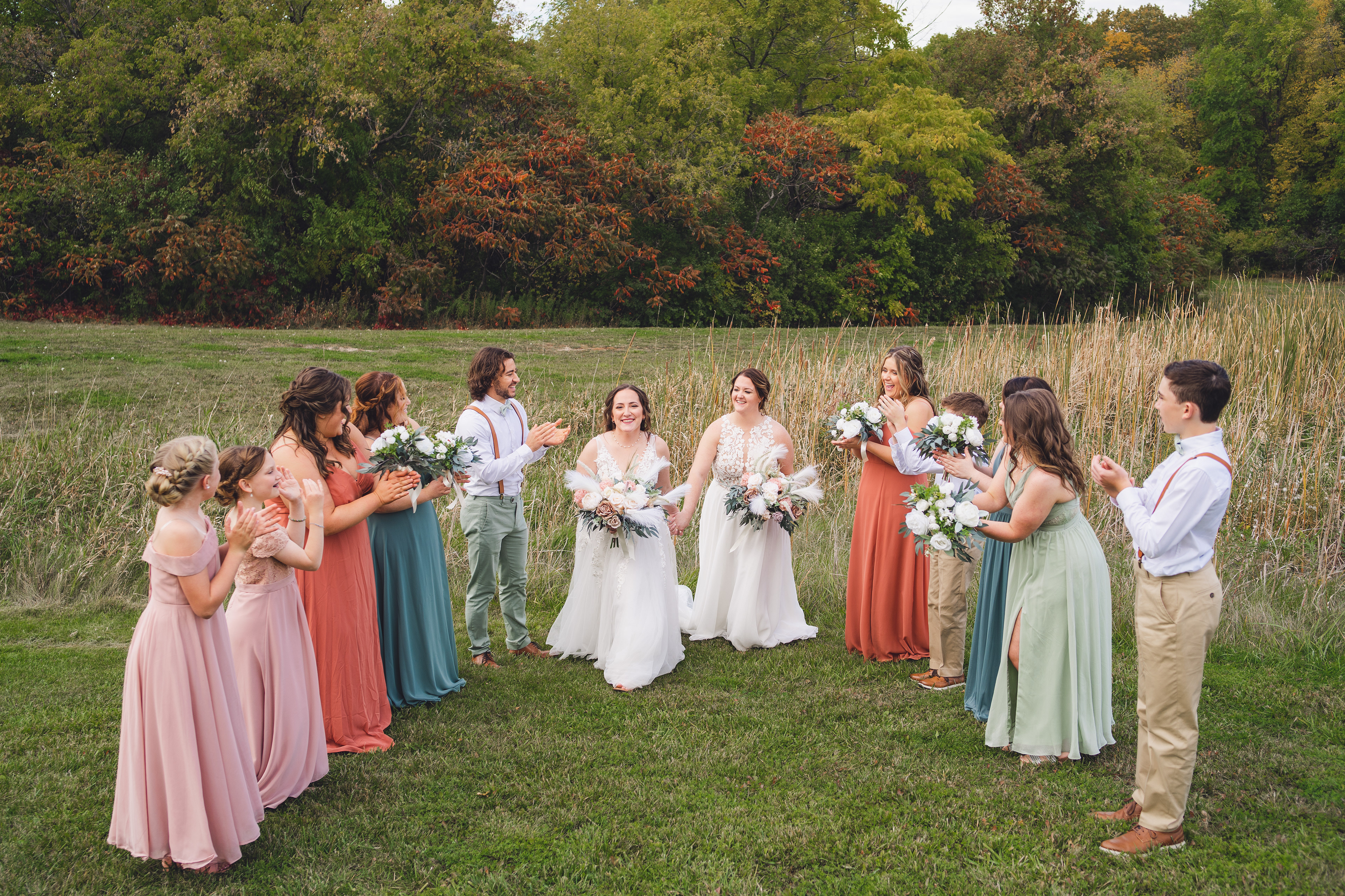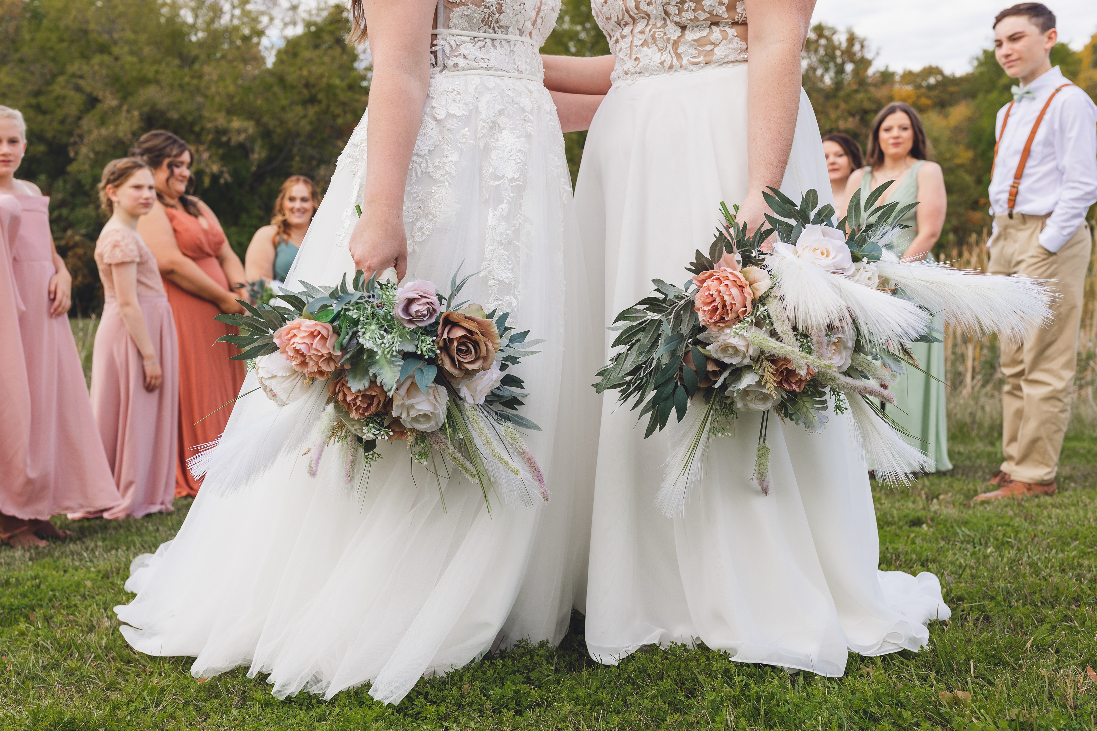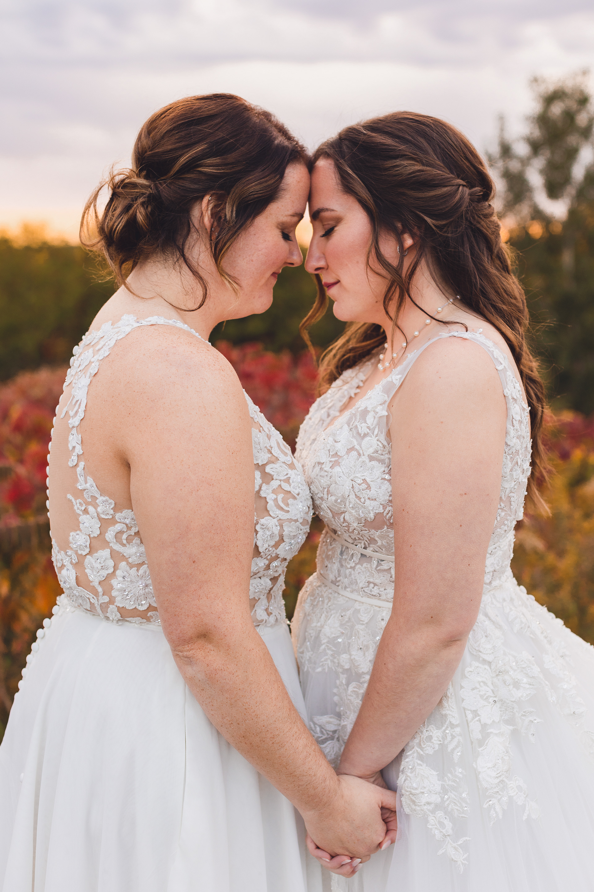 Emma and Kenzie's bougie wedding was hosted at Pique Travel, a new event space in downtown Excelsior, MN. We went to a nearby park I scouted for formal photos as it was an autumn wedding, and those colors are my jam! This wedding had two brides and they had beautiful flowers and dresses to complete their dream look for their wedding day.