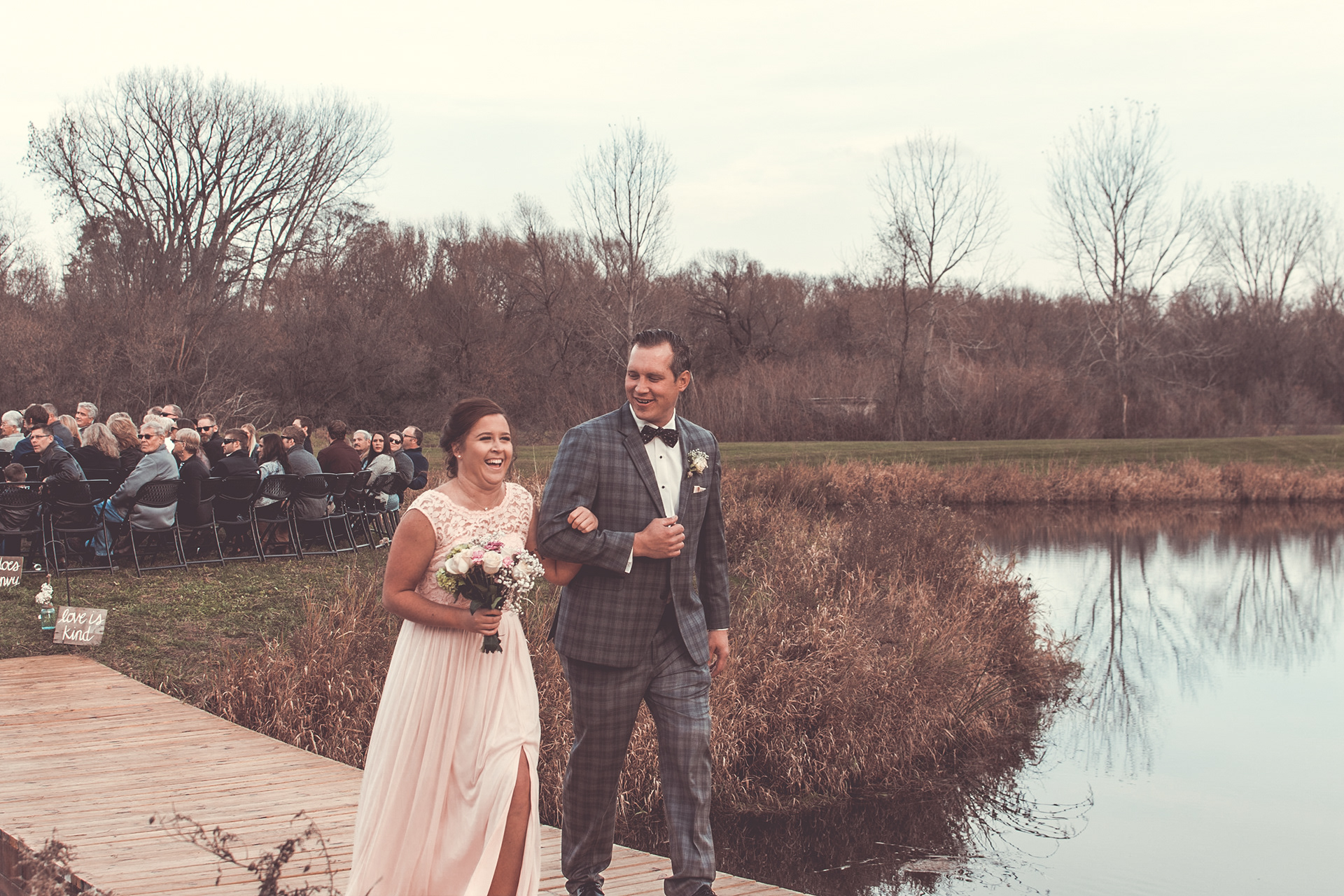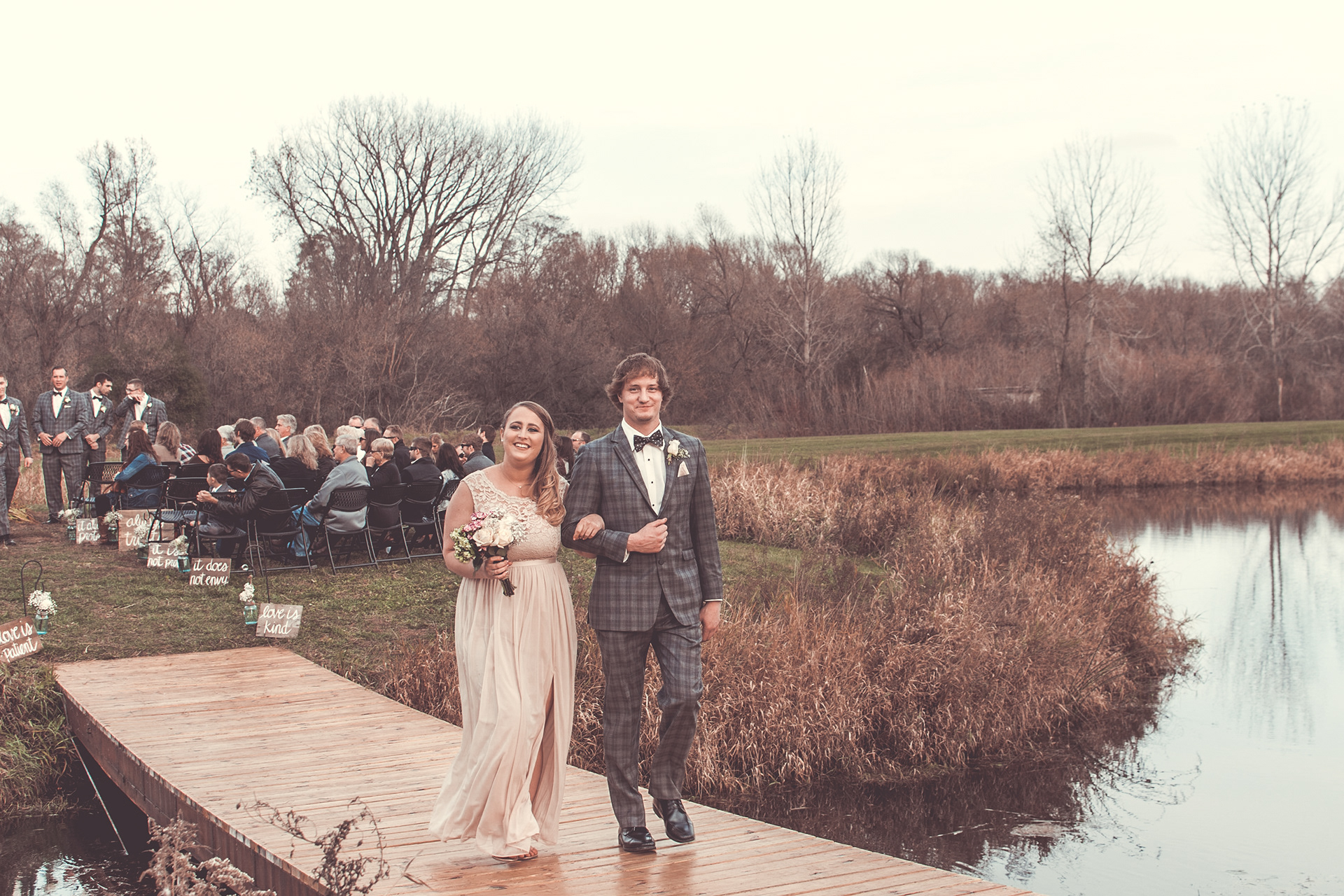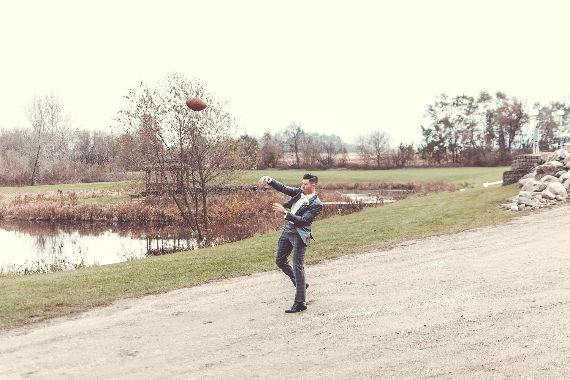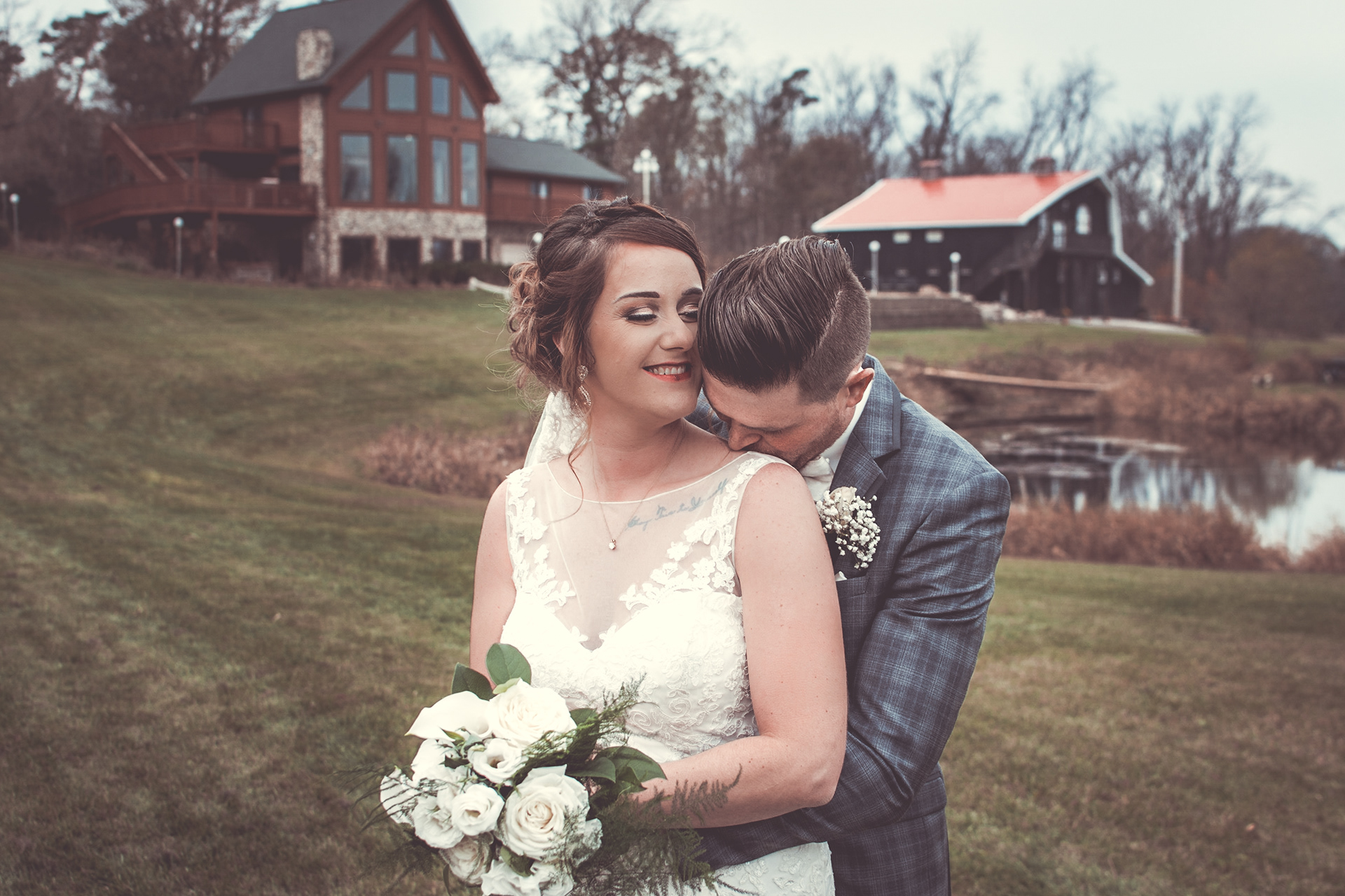 Nick and Dana's wedding at the Barn at Crocker's Creek in Faribualt, MN had an amazing fall vibe. We were blessed with a sunny and warm October day that had everyone enjoying the grounds surrounding the barn. This venue features an amazing ceremony site located on an island surrounded, by water that is filled with fish! Tons of room here to really customize your event.