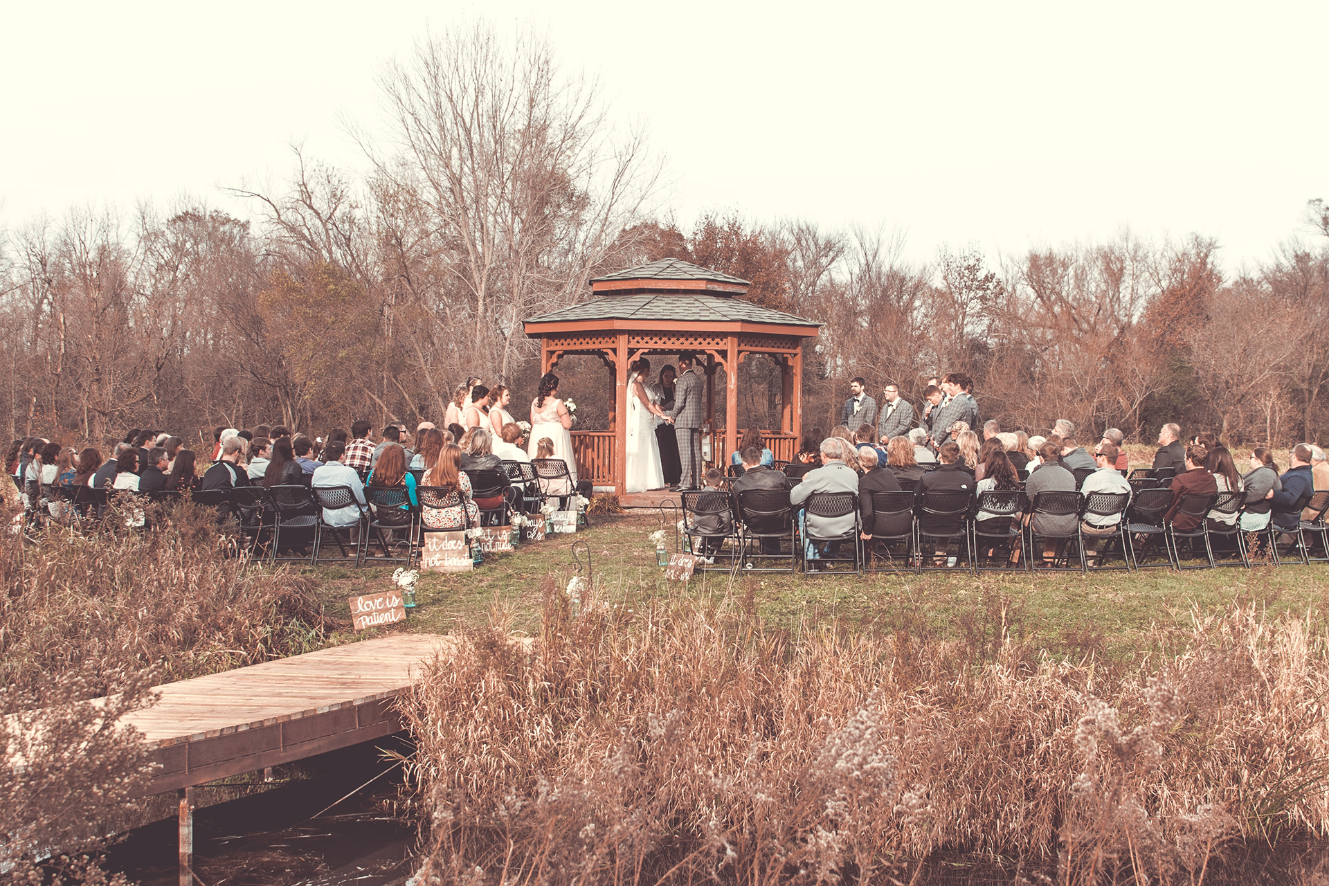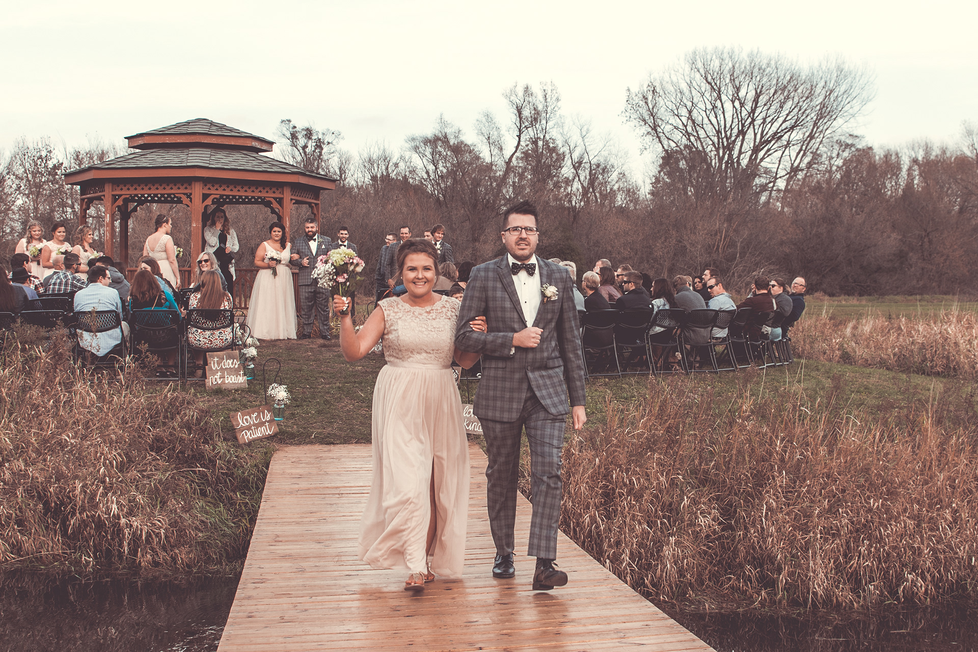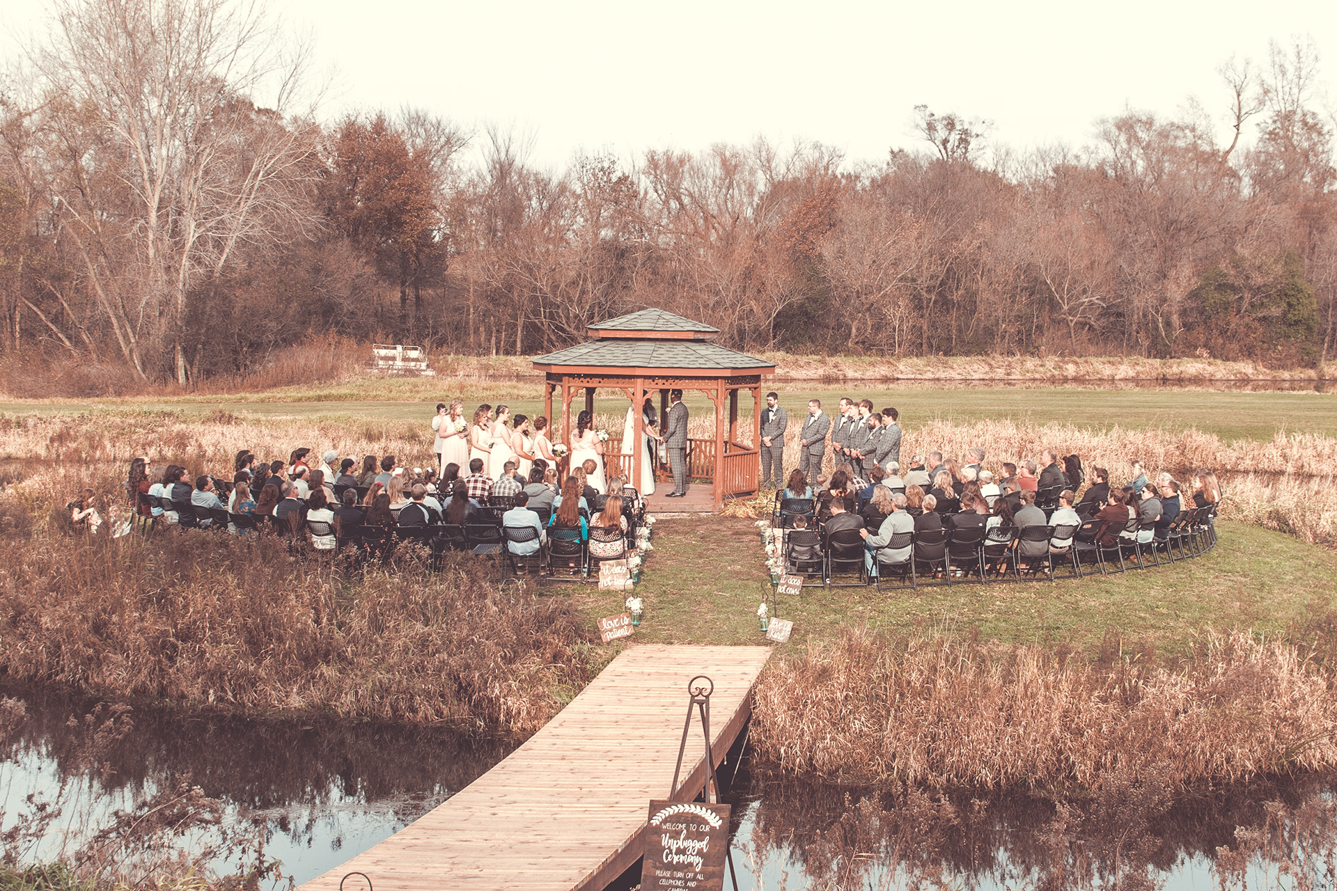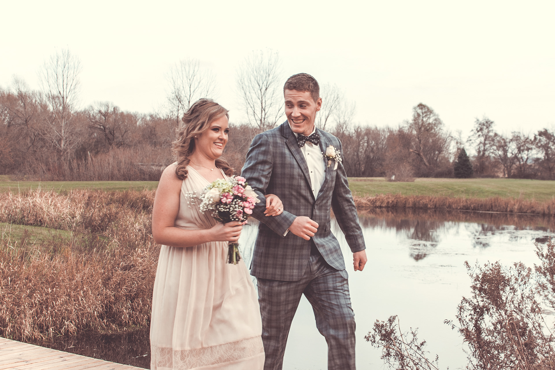 Nick and Dana's wedding at the Barn at Crocker's Creek in Faribualt, MN had an amazing fall vibe. We were blessed with a sunny and warm October day that had everyone enjoying the grounds surrounding the barn. This venue features an amazing ceremony site located on an island surrounded, by water that is filled with fish! Tons of room here to really customize your event.